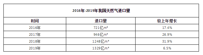“2019年我國天然氣對外依存度42.1%,由于國內需求仍將持續增長,國內產量難有較大提升,我國油氣對外依存度今后還將上升。”