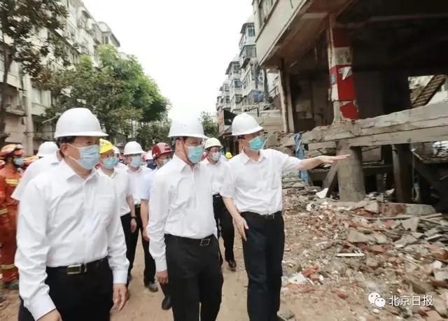 應勇、王忠林、李樂成,應急管理部副部長宋元明、住建部副部長張小宏一行察看事故現場,了解爆炸損失、救援進展等情況,指導應急處置、現場救援等工作,慰問現場救援人員。
