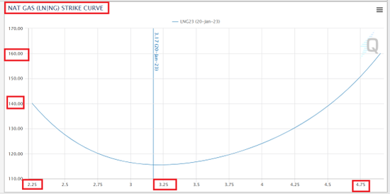 圖6:天然氣虛值看漲期權的隱含波動率較高