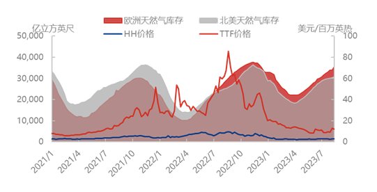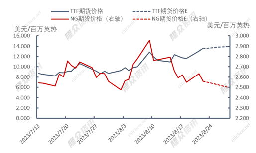 截至8月22日,美國亨利港天然氣(NG)期貨價格為2.56美元/百萬英熱,環比上周期(08.15)下調0.099美元/百萬英熱,跌幅為3.72%;荷蘭天然氣(TTF)期貨價格為13.582美元/百萬英熱,環比上周期(08.15)上調1.183美元/百萬英熱,漲幅為9.54%。