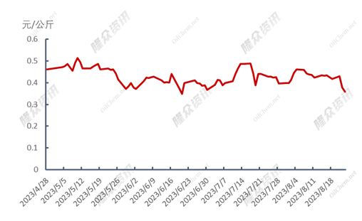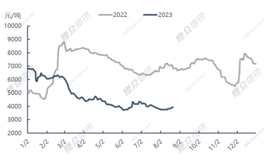 截至8月23日,LNG全國接貨平均價格報4221元/噸,較上周上漲5.39%,同比下降38.31%。下游高價接貨較為抗拒,但由于上游不斷抬價出貨,帶動接貨價格上漲。