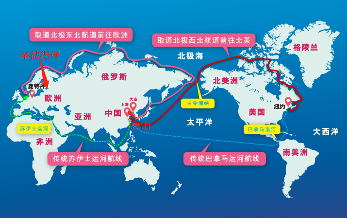 該白皮書的撰寫者之一趙隆表示,“隨著全球氣候持續轉暖,據估計,東北航道會在50年后全年通航。屆時也意味著中國通往歐洲及北美的遠洋航運,相比傳統繞道蘇伊士運河或巴拿馬運河的航線,運輸成本也將減少20%至30%。”