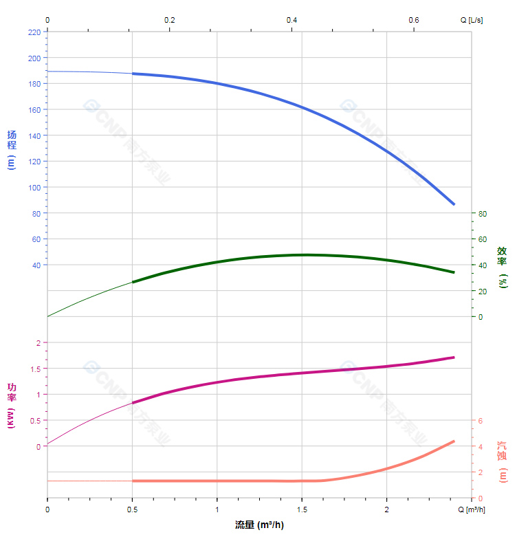 • 額定揚程 m:180