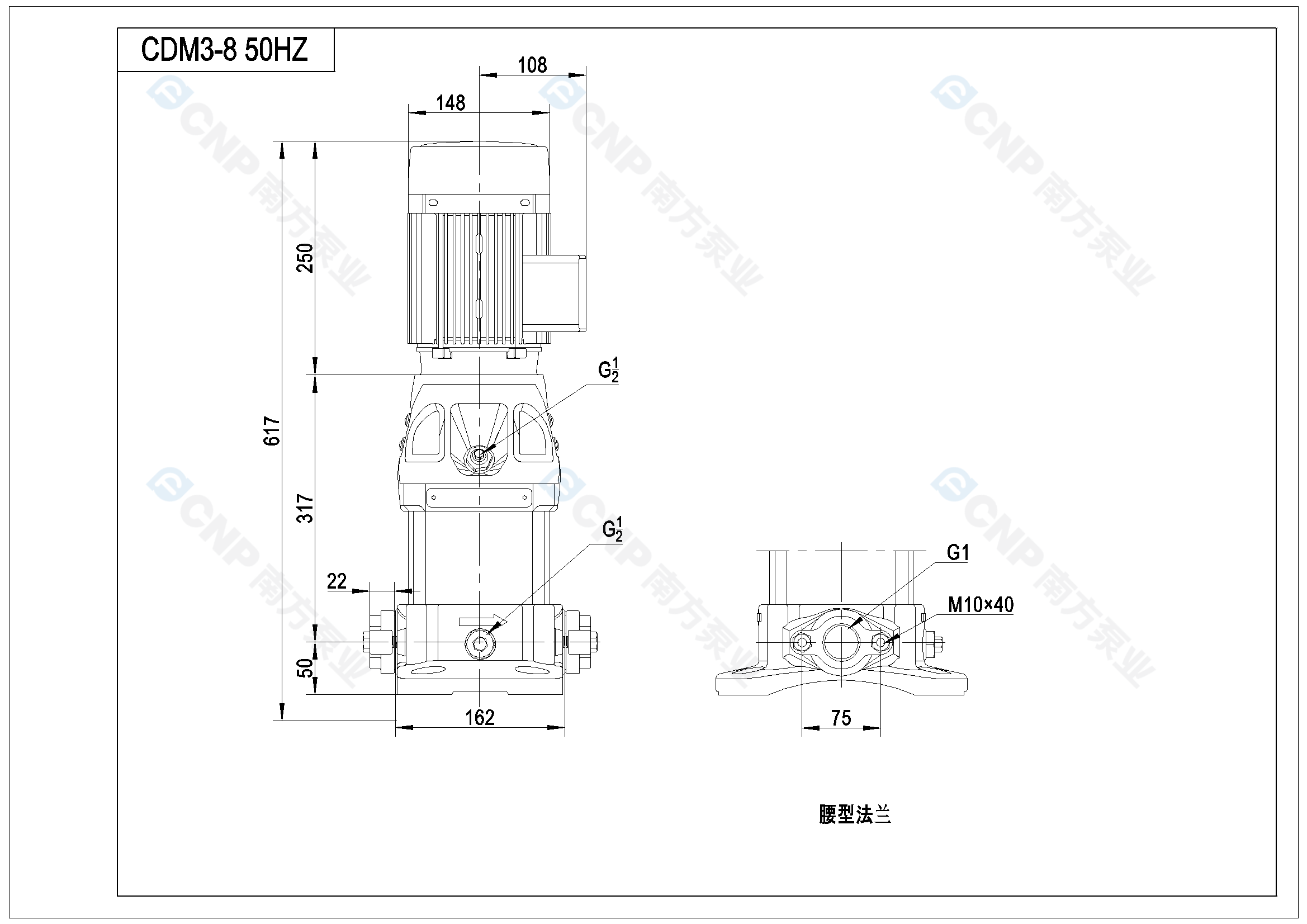 您的位置: 南方泵業 > 在線選型 > 多級泵 > CDM(F)(50Hz) > CDM3-8