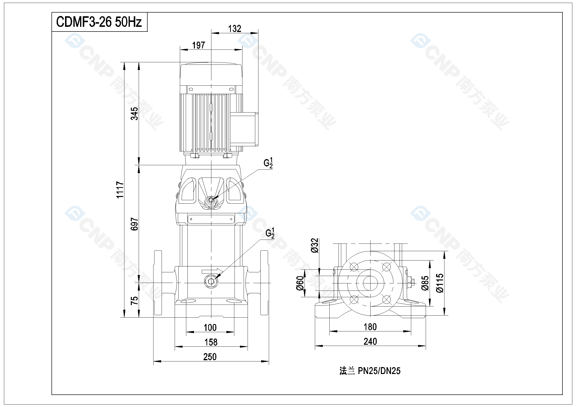 您的位置: 南方泵業 > 在線選型 > 多級泵 > CDM(F)(50Hz) > CDM3-26
