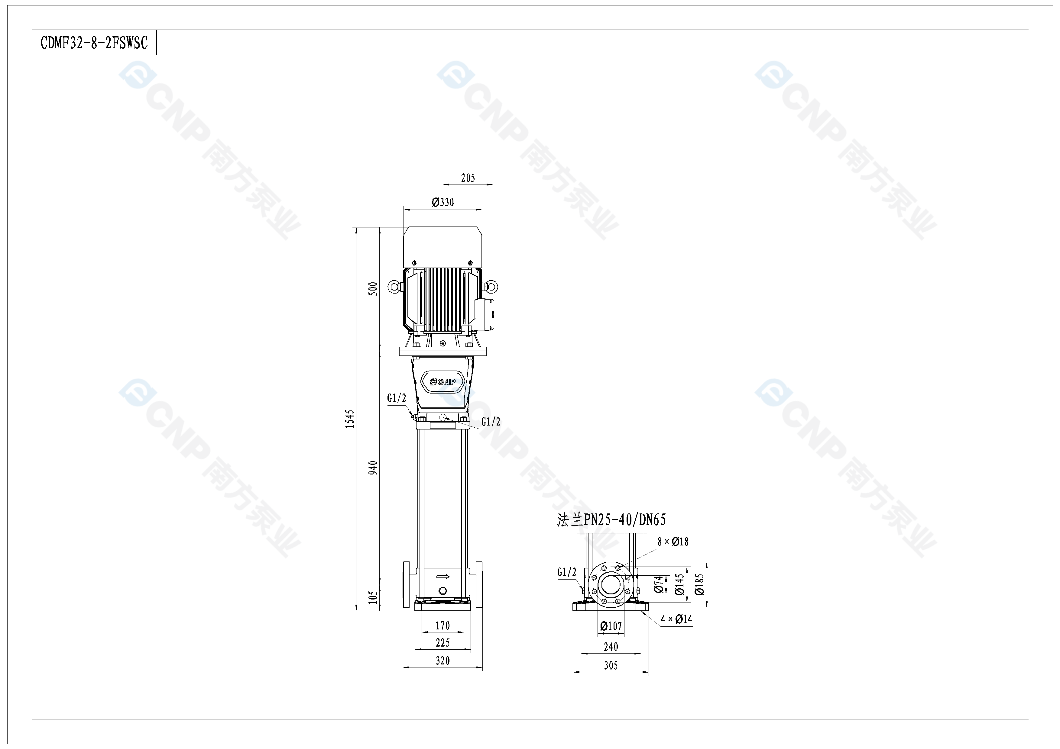 南方泵業CDM32-8-2水泵明細參數