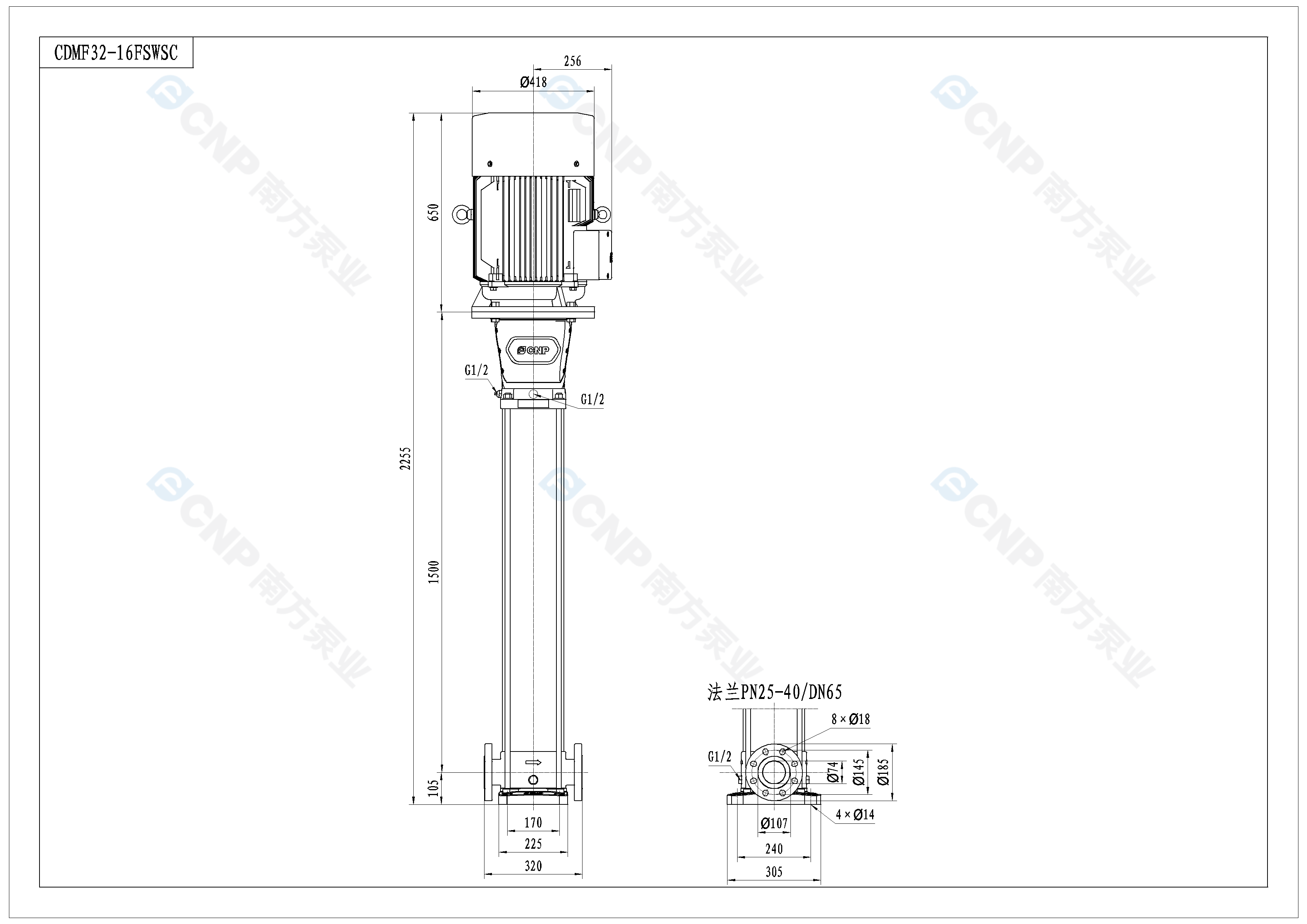 南方泵業CDM32-16水泵明細參數