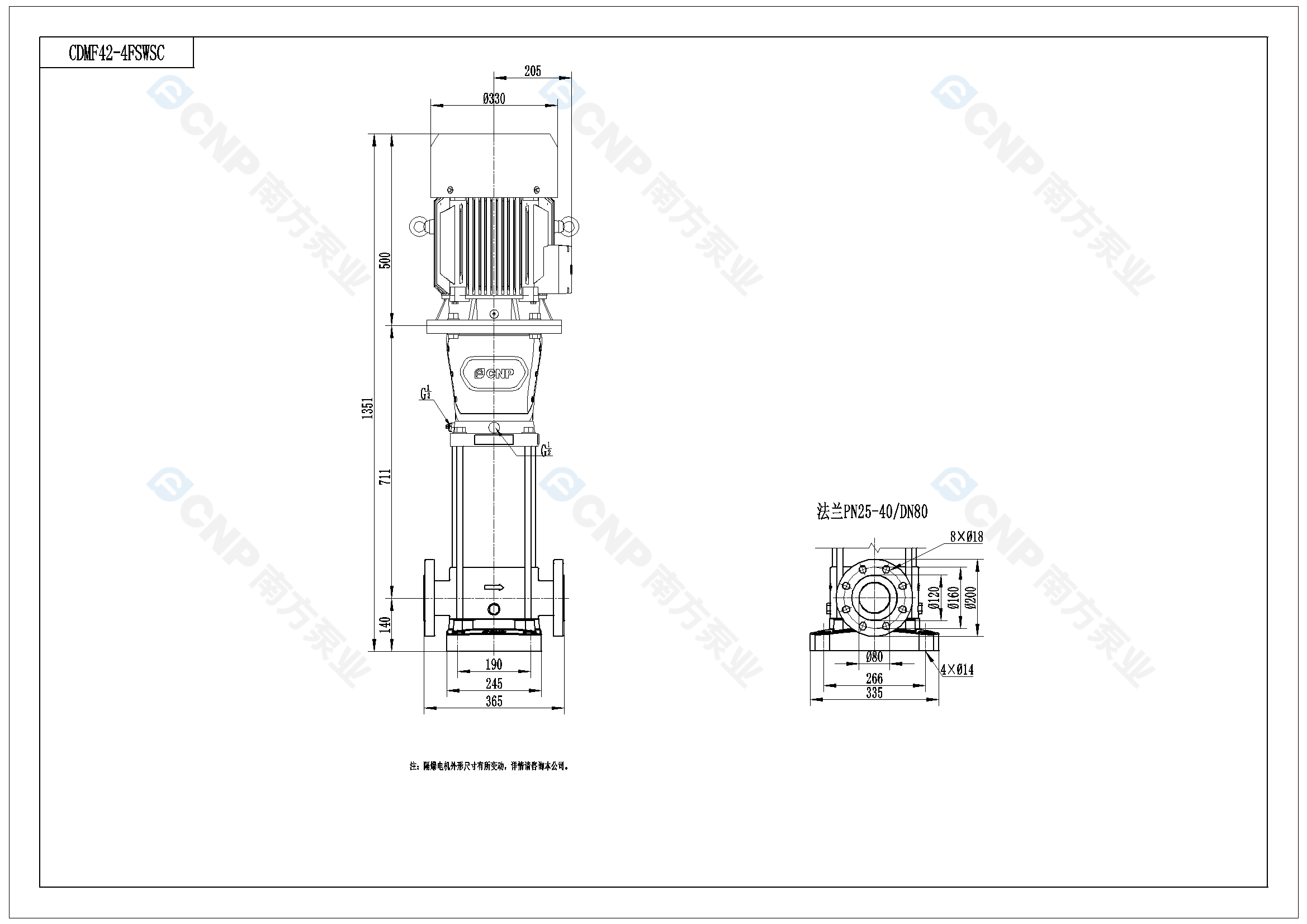 南方泵業CDM42-4水泵明細參數