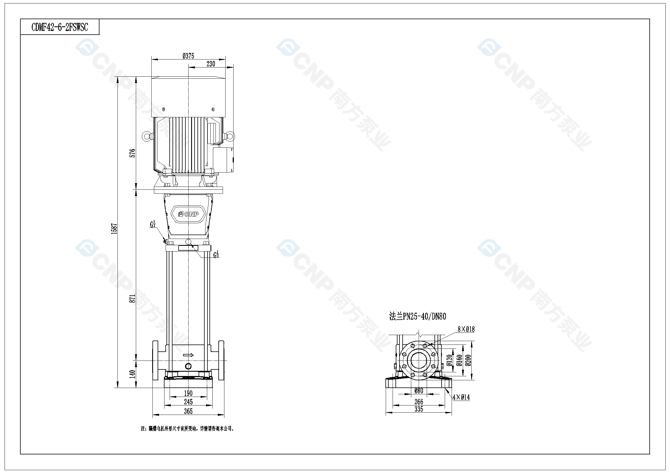 南方泵業CDM42-6-2水泵明細參數