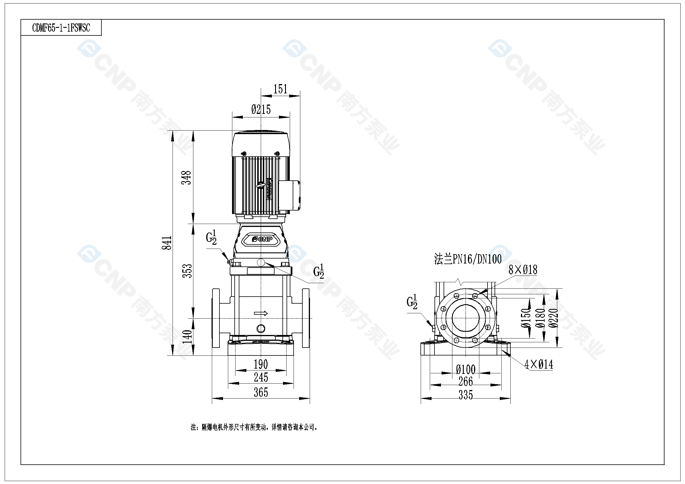 南方泵業CDM65-1-1水泵明細參數
