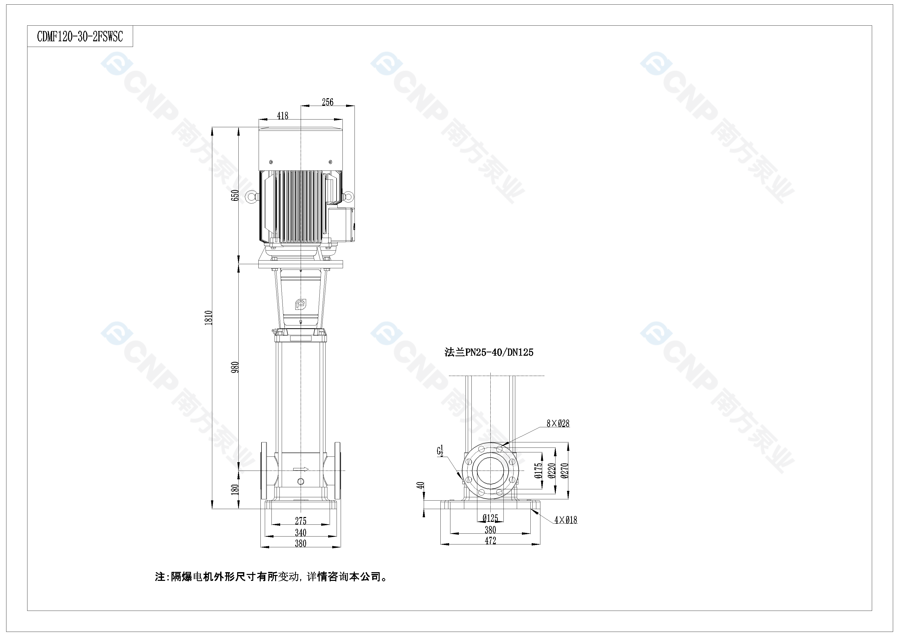 您的位置: 南方泵業 > 在線選型 > 多級泵 > CDM(F)(50Hz) > CDM120-3-2