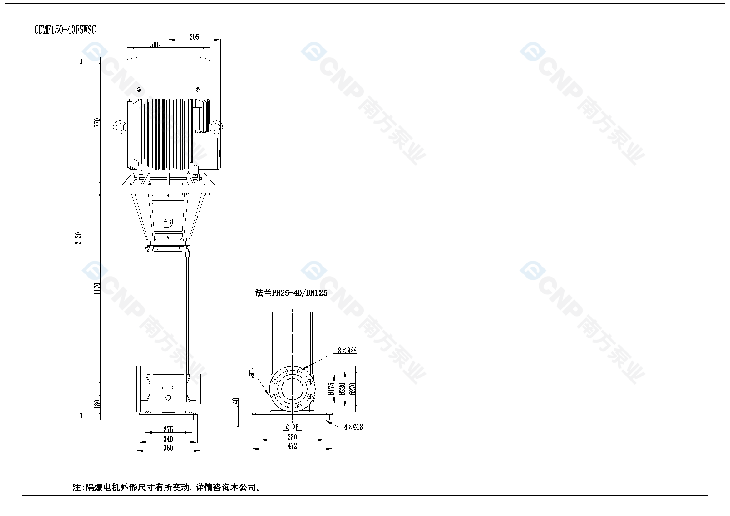您的位置: 南方泵業 > 在線選型 > 多級泵 > CDM(F)(50Hz) > CDM150-4