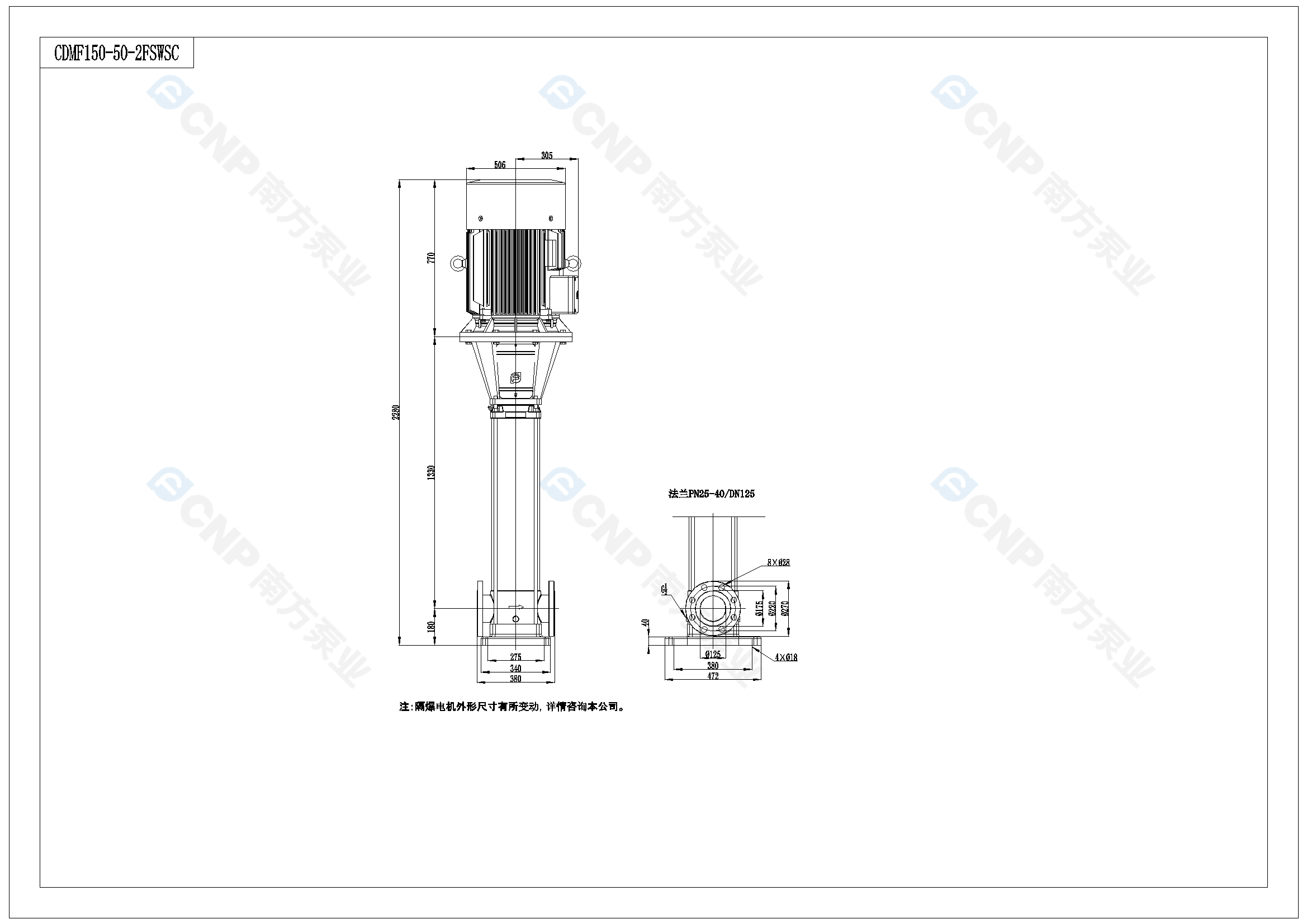 您的位置: 南方泵業 > 在線選型 > 多級泵 > CDM(F)(50Hz) > CDM150-5-2