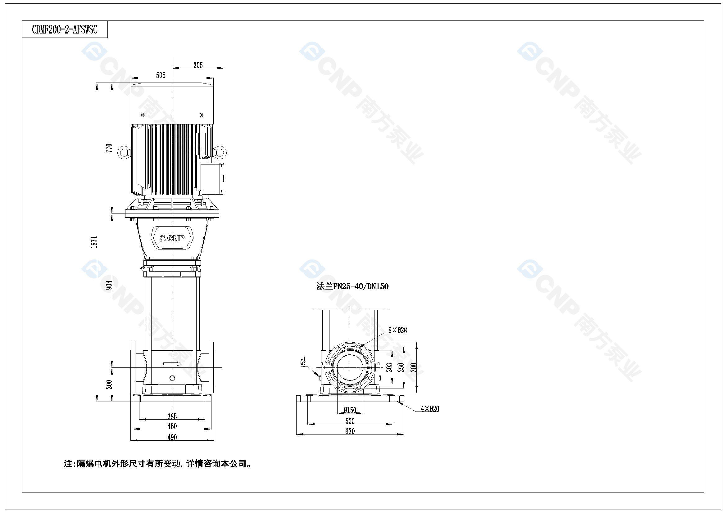 您的位置: 南方泵業 > 在線選型 > 多級泵 > CDM(F)(50Hz) > CDM200-2-A