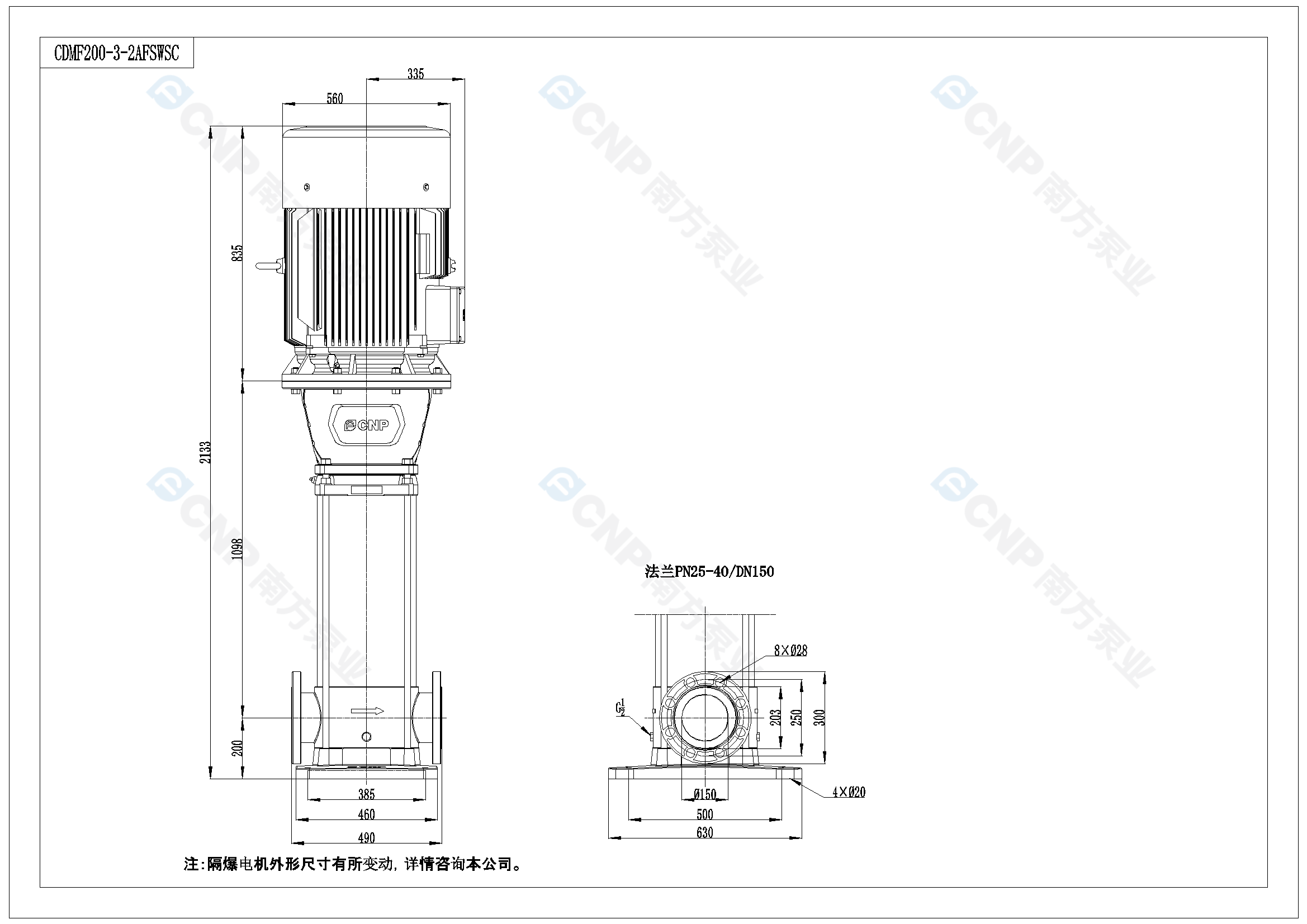 您的位置: 南方泵業 > 在線選型 > 多級泵 > CDM(F)(50Hz) > CDM200-3-2A