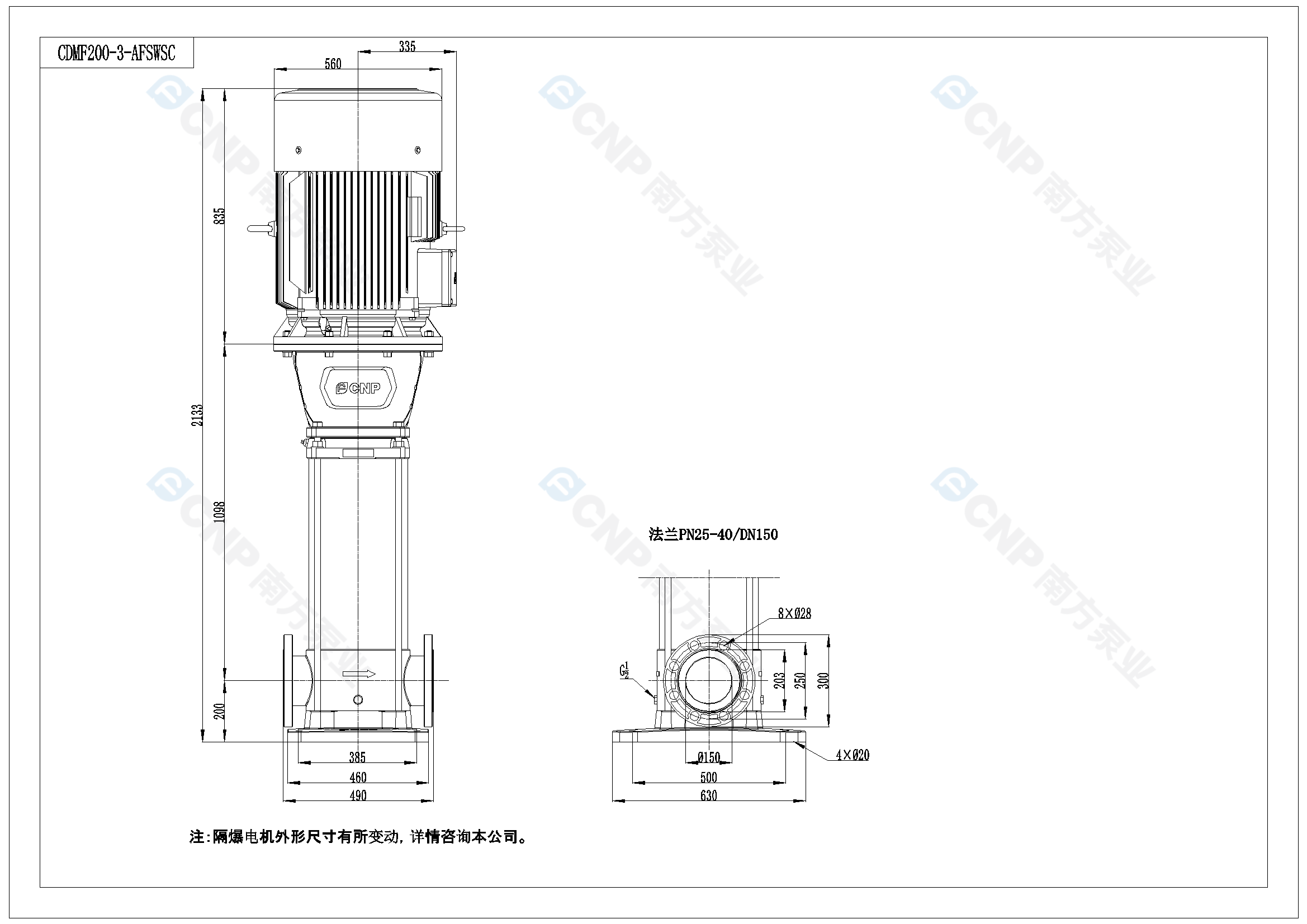 您的位置: 南方泵業 > 在線選型 > 多級泵 > CDM(F)(50Hz) > CDM200-3-A
