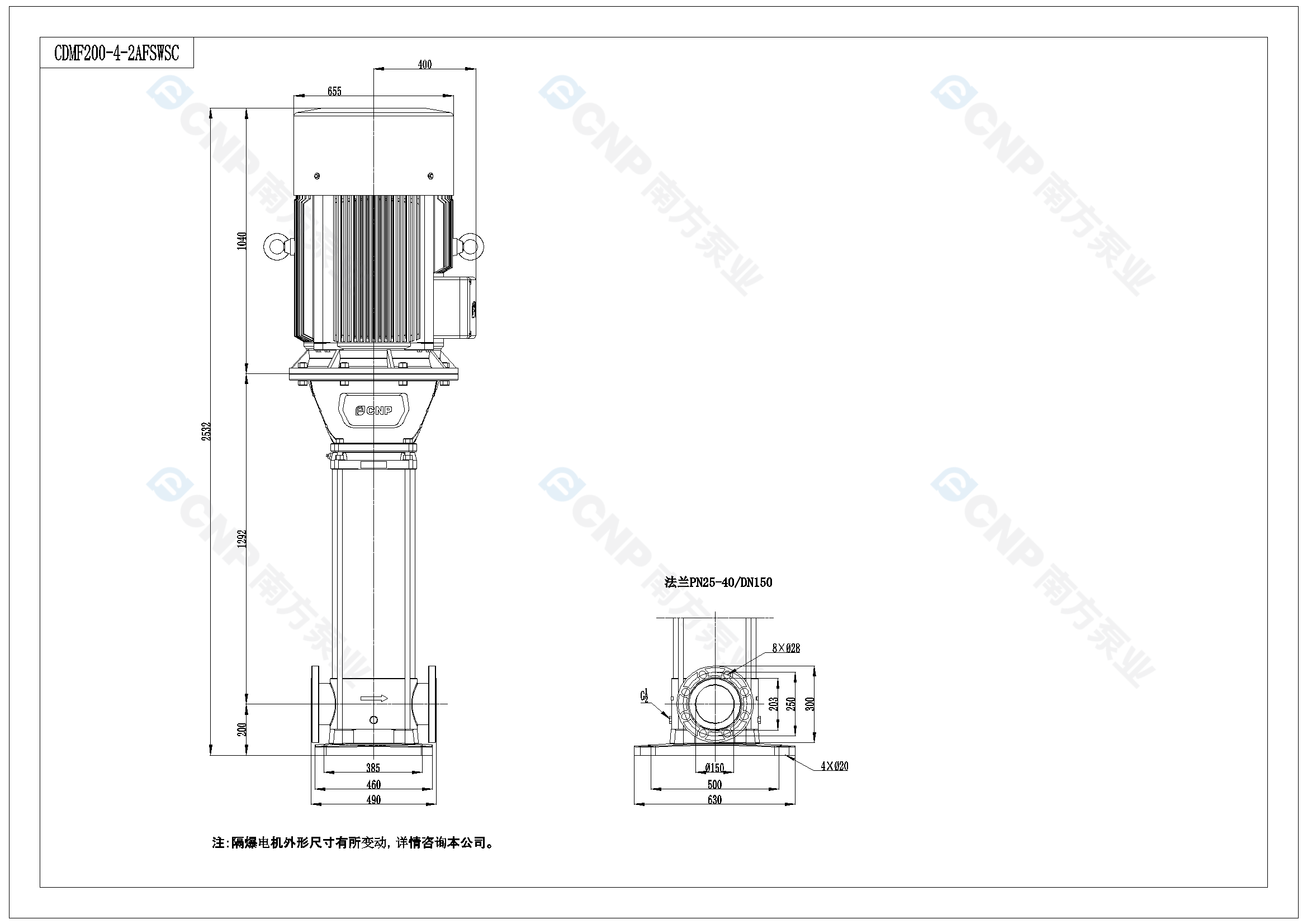南方泵業CDM200-4-2A水泵明細參數