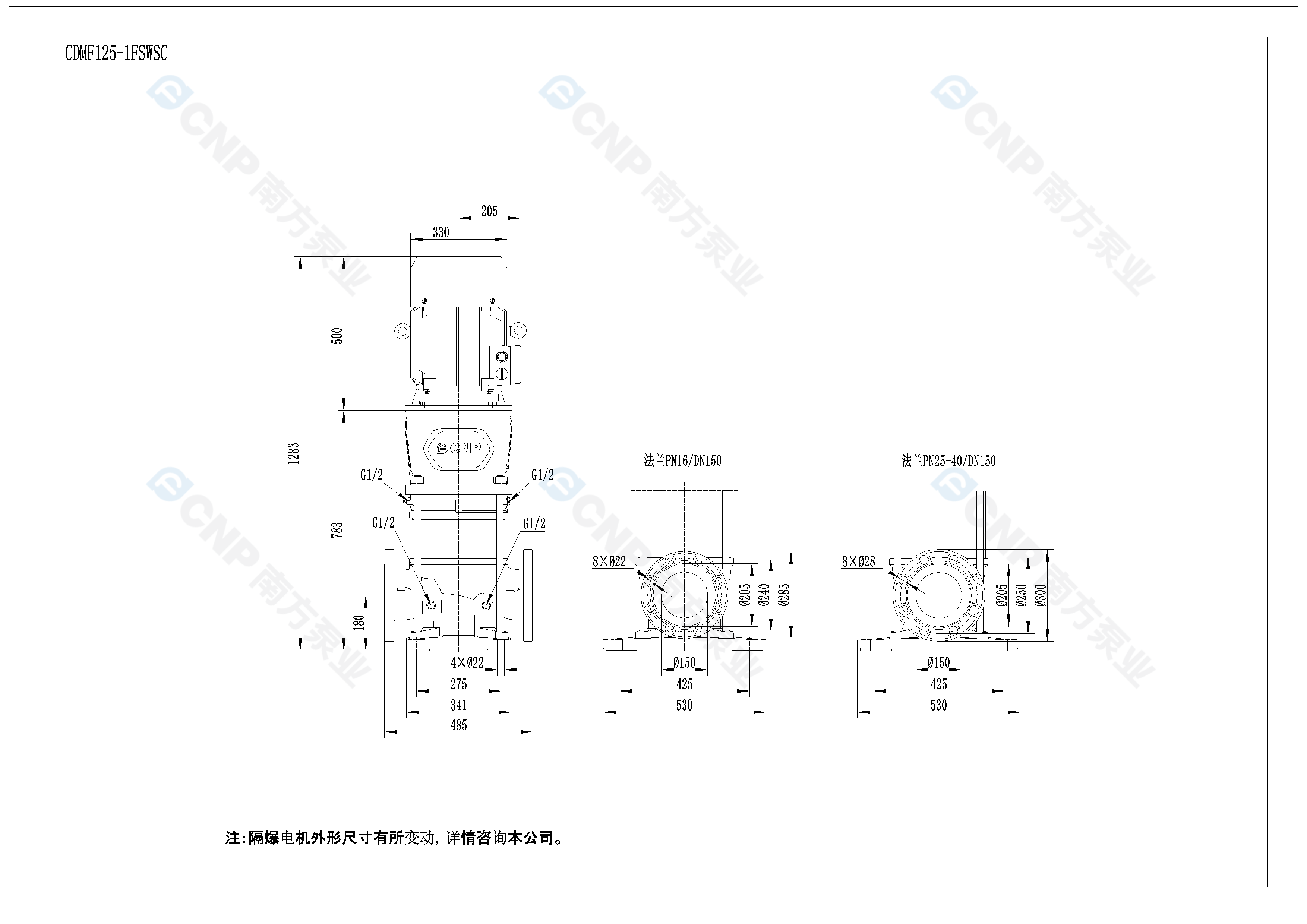 您的位置: 南方泵業 > 在線選型 > 多級泵 > CDM(F)(50Hz) > CDM125-1