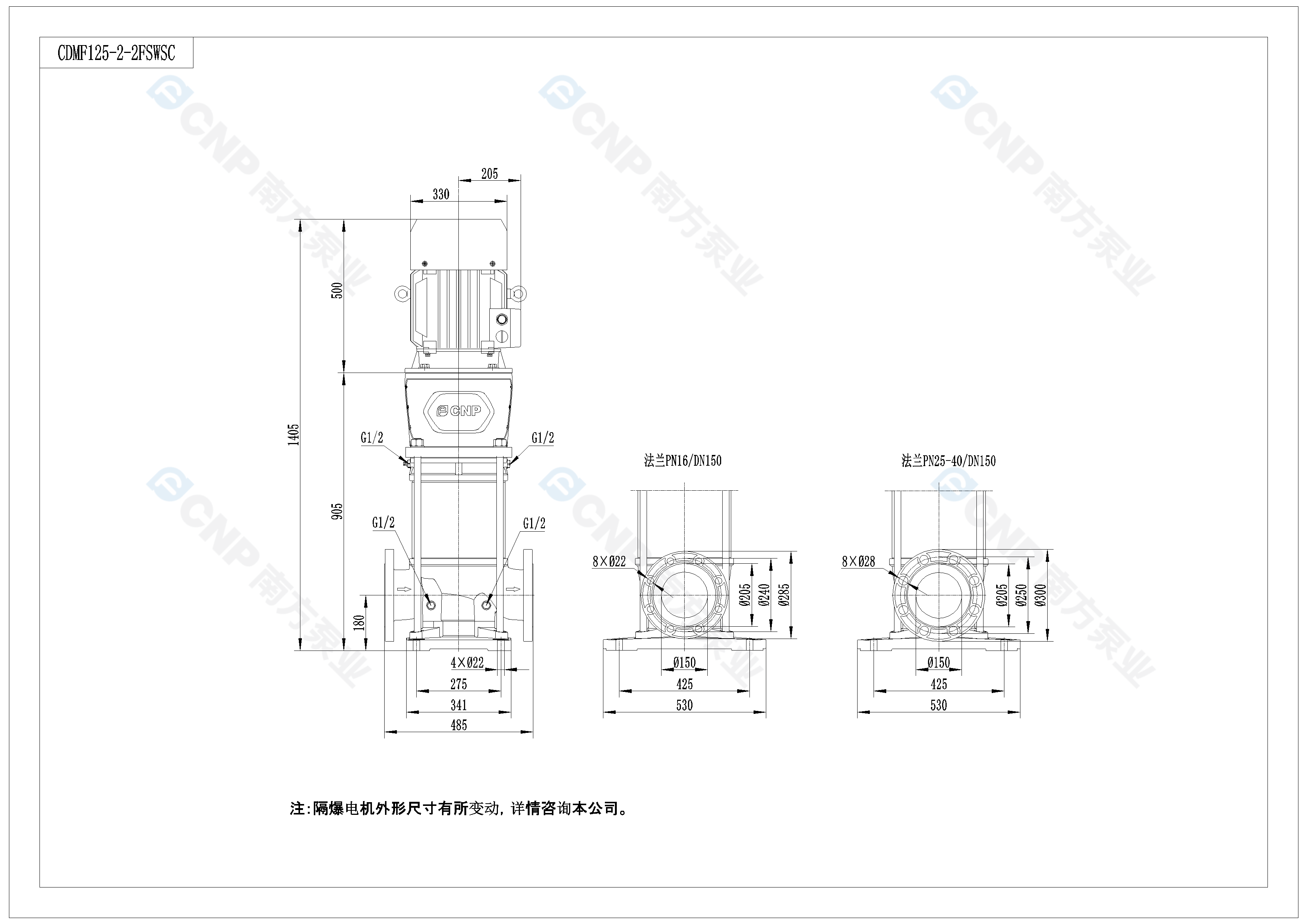 您的位置: 南方泵業 > 在線選型 > 多級泵 > CDM(F)(50Hz) > CDM125-2-2