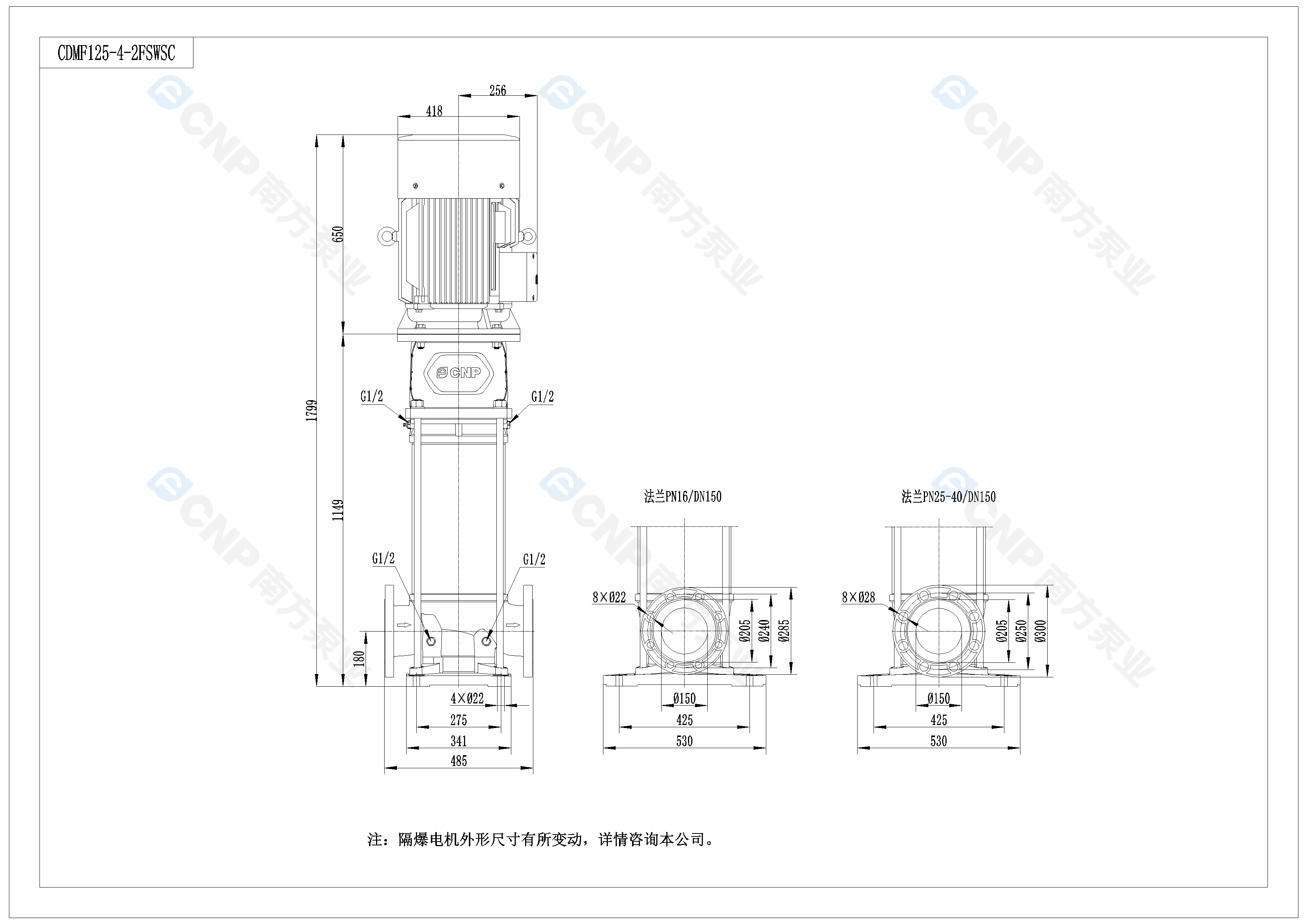 您的位置: 南方泵業 > 在線選型 > 多級泵 > CDM(F)(50Hz) > CDM125-4-2