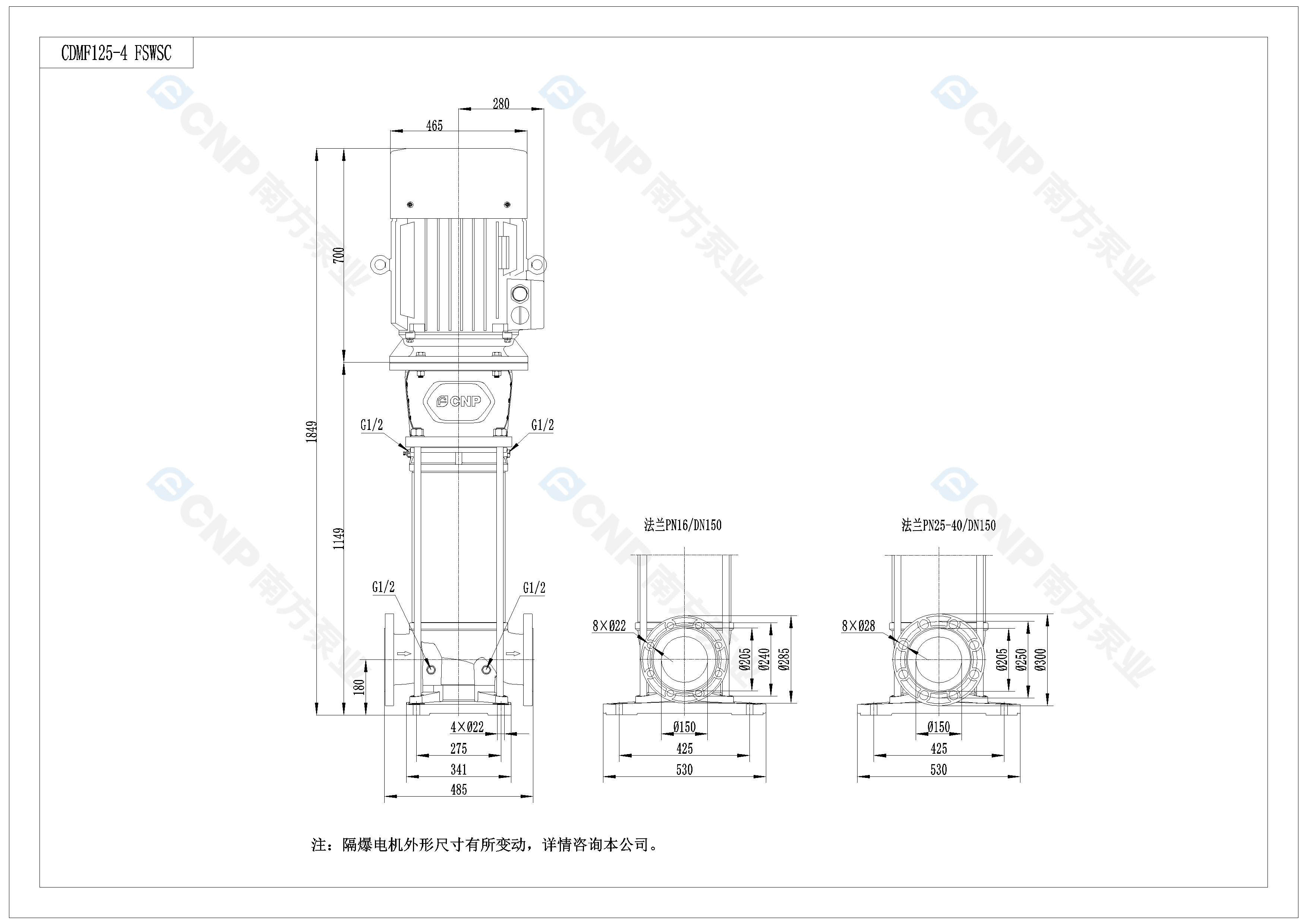 您的位置: 南方泵業 > 在線選型 > 多級泵 > CDM(F)(50Hz) > CDM125-4