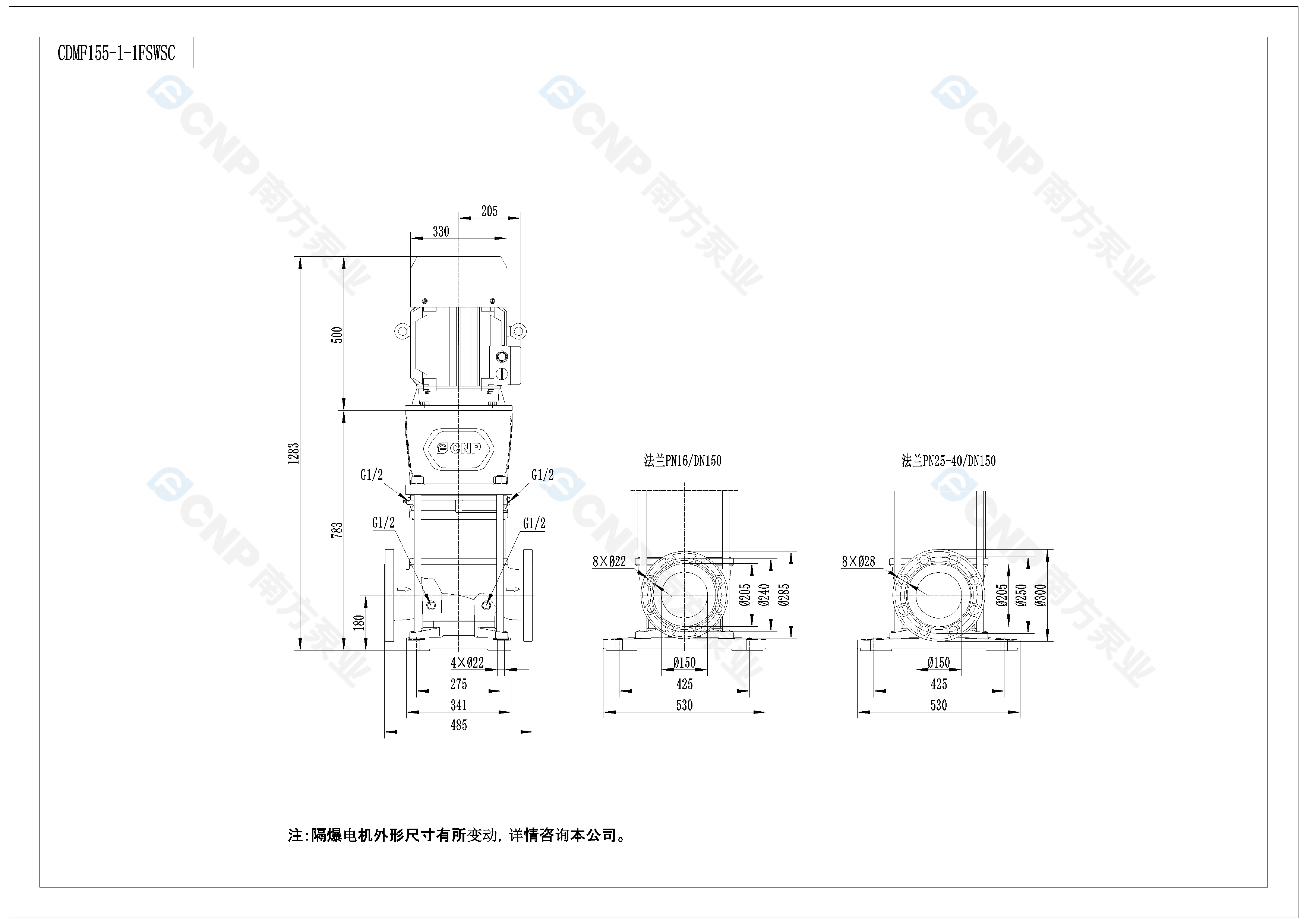 您的位置: 南方泵業 > 在線選型 > 多級泵 > CDM(F)(50Hz) > CDM155-1-1