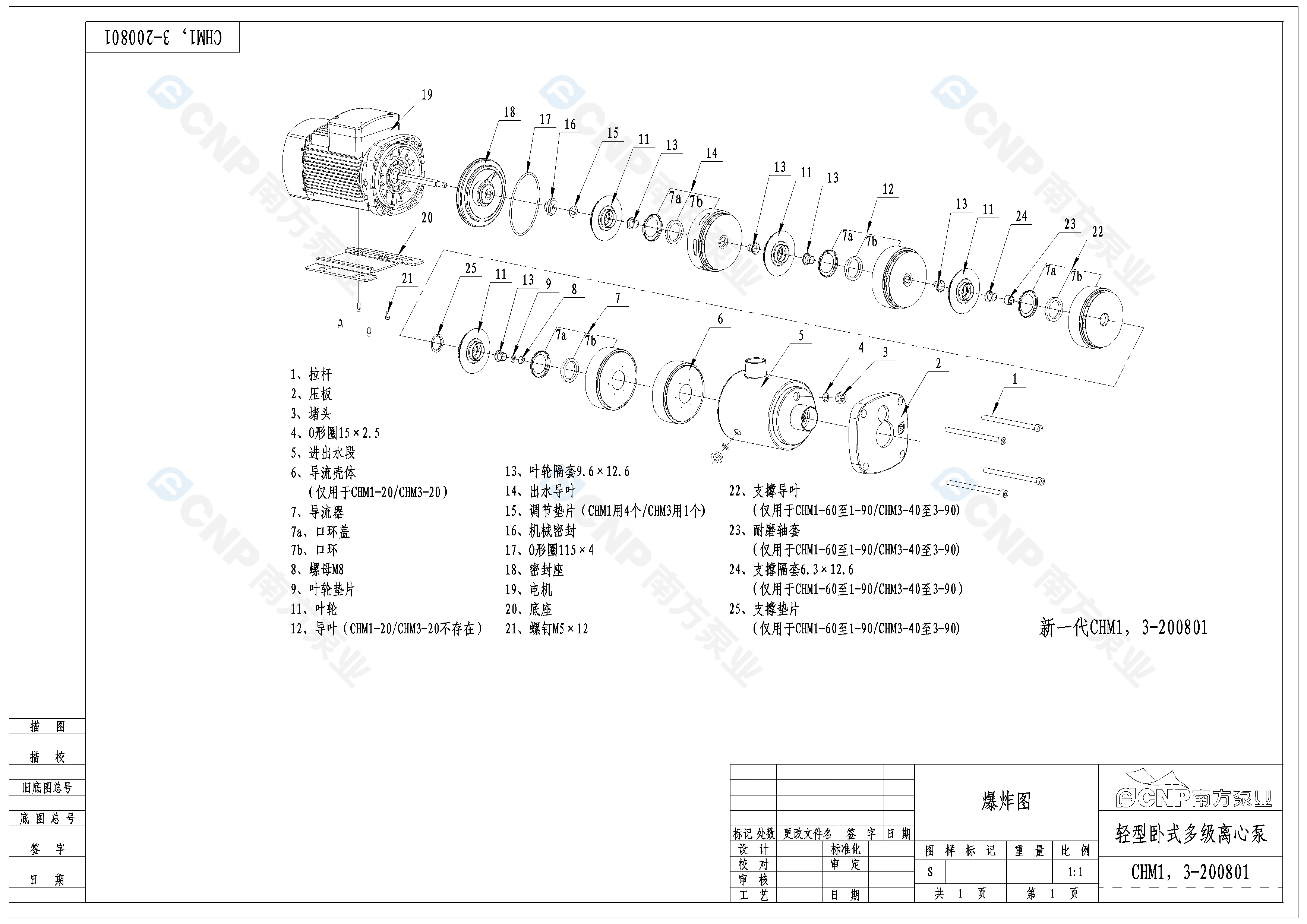 南方泵業CHM3-20水泵明細參數
