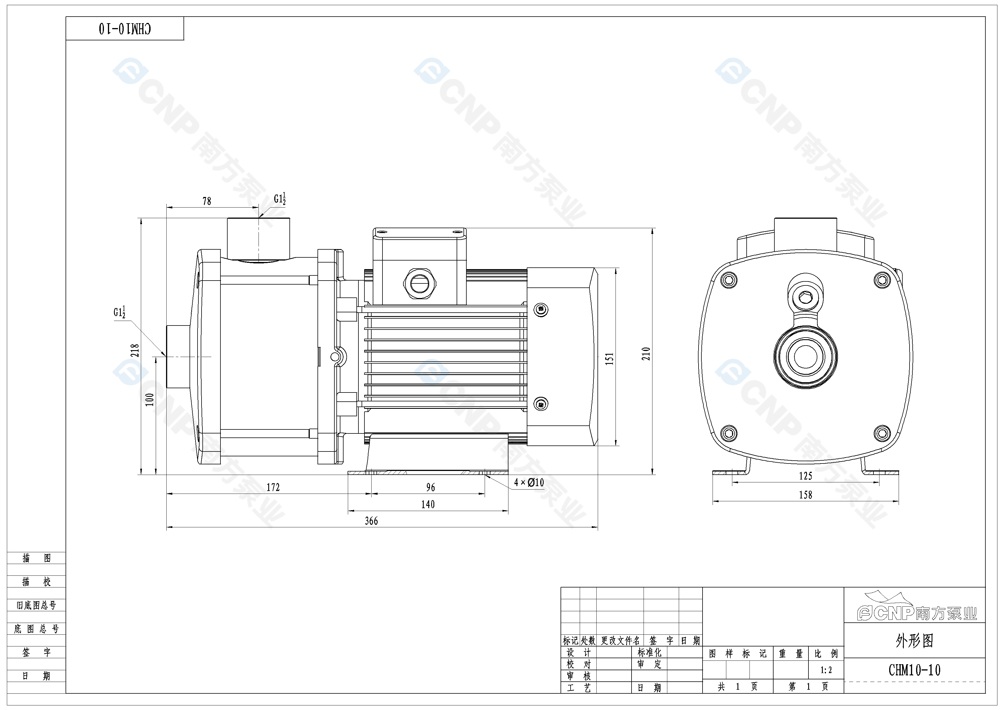 南方泵業CHM10-10水泵明細參數