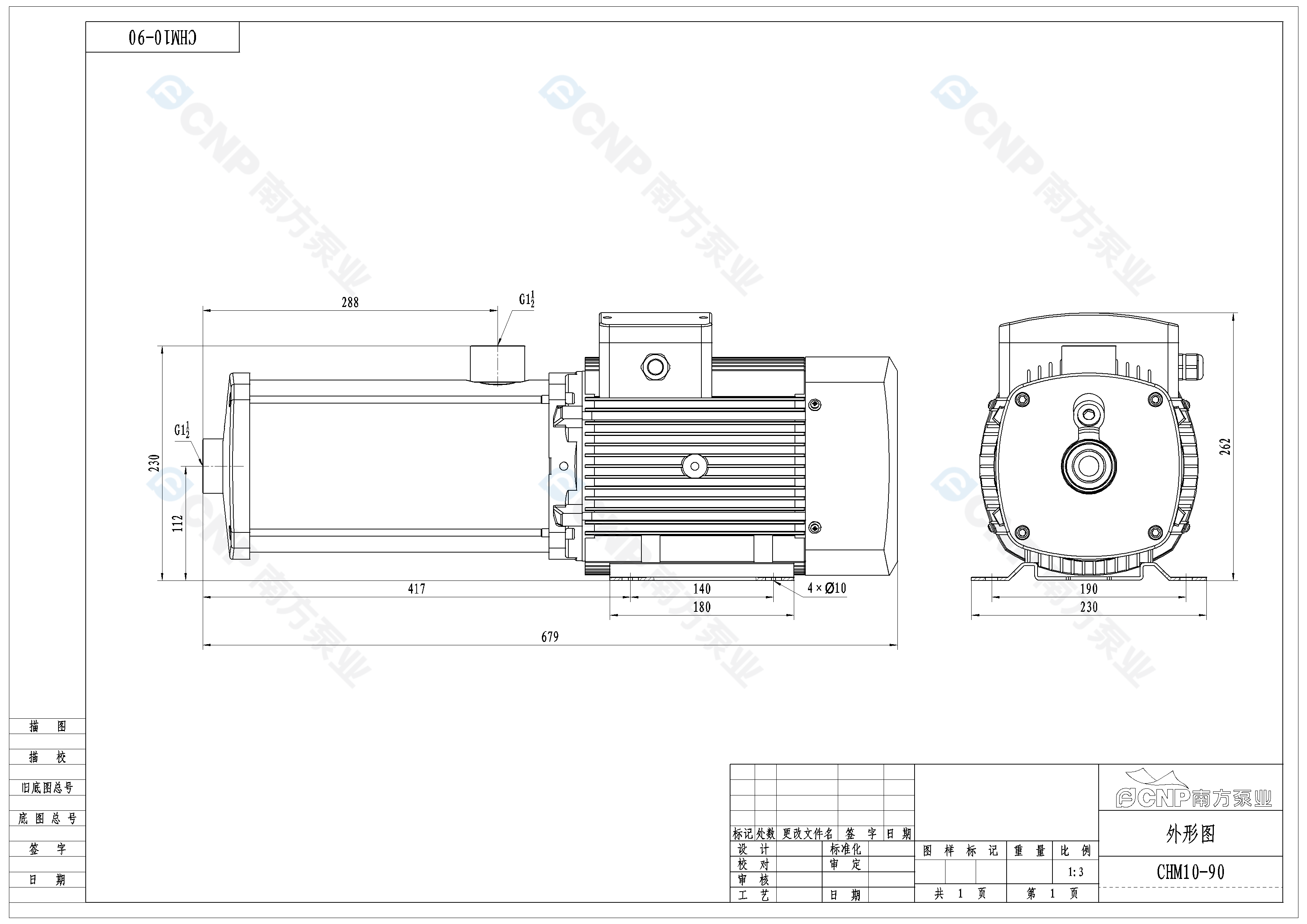 南方泵業CHM10-90水泵明細參數