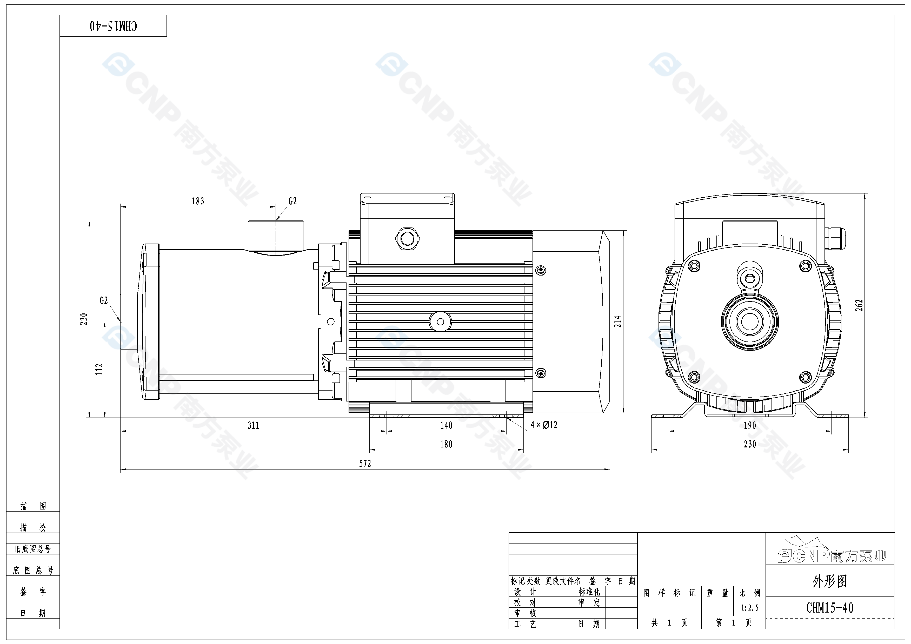 南方泵業CHM15-40水泵明細參數