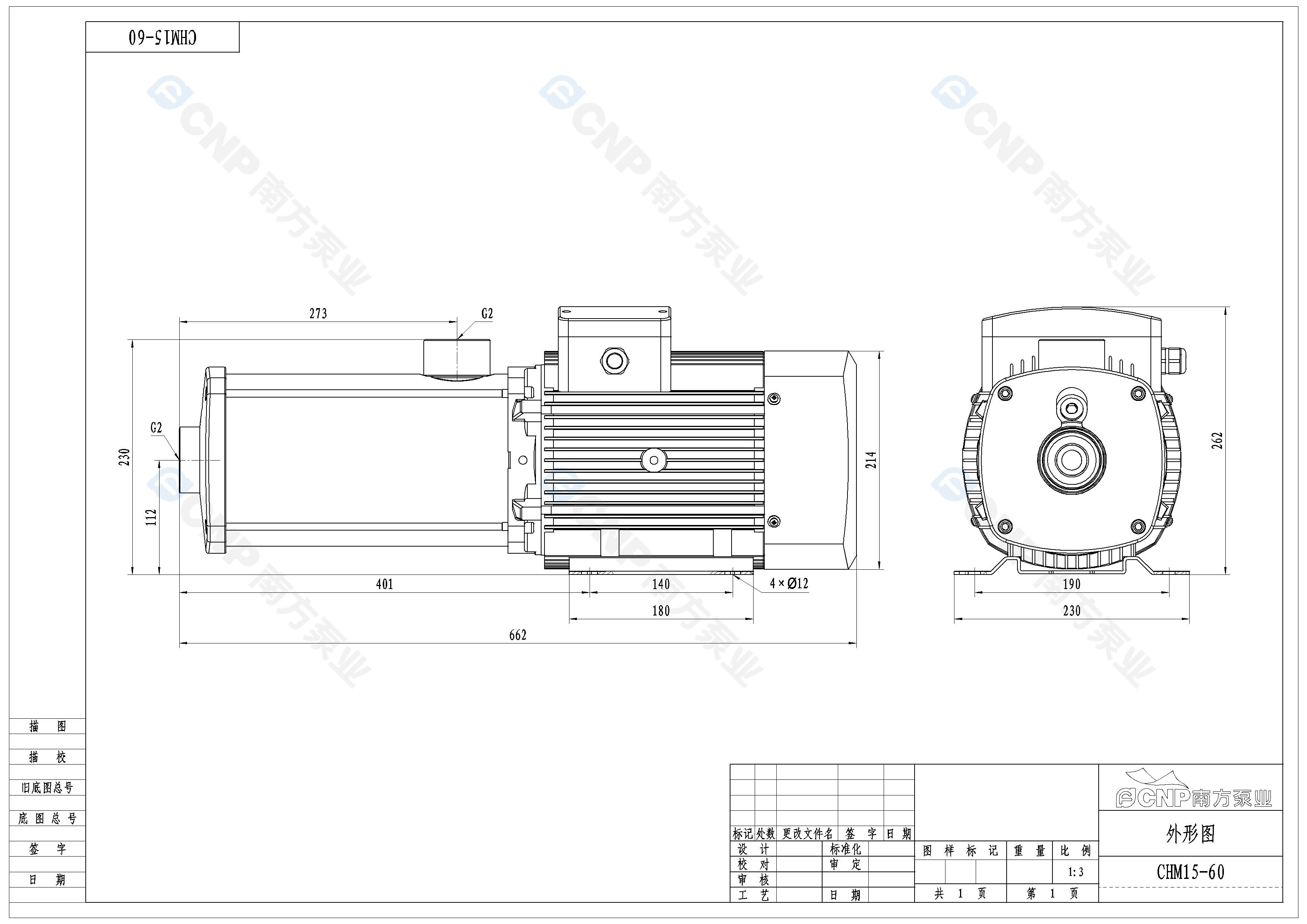 南方泵業CHM15-60水泵明細參數