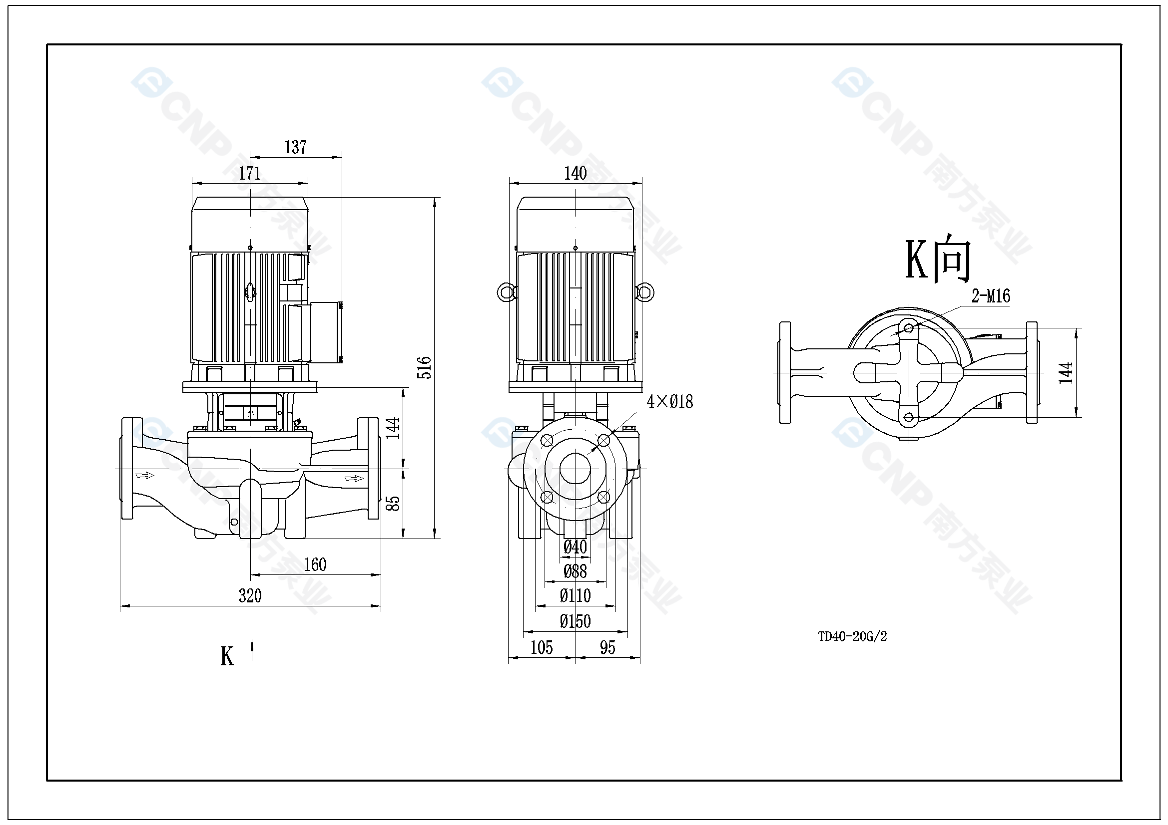 您的位置: 南方泵業 > 在線選型 > 管道泵 > TD(50Hz) > TD40-20G/2