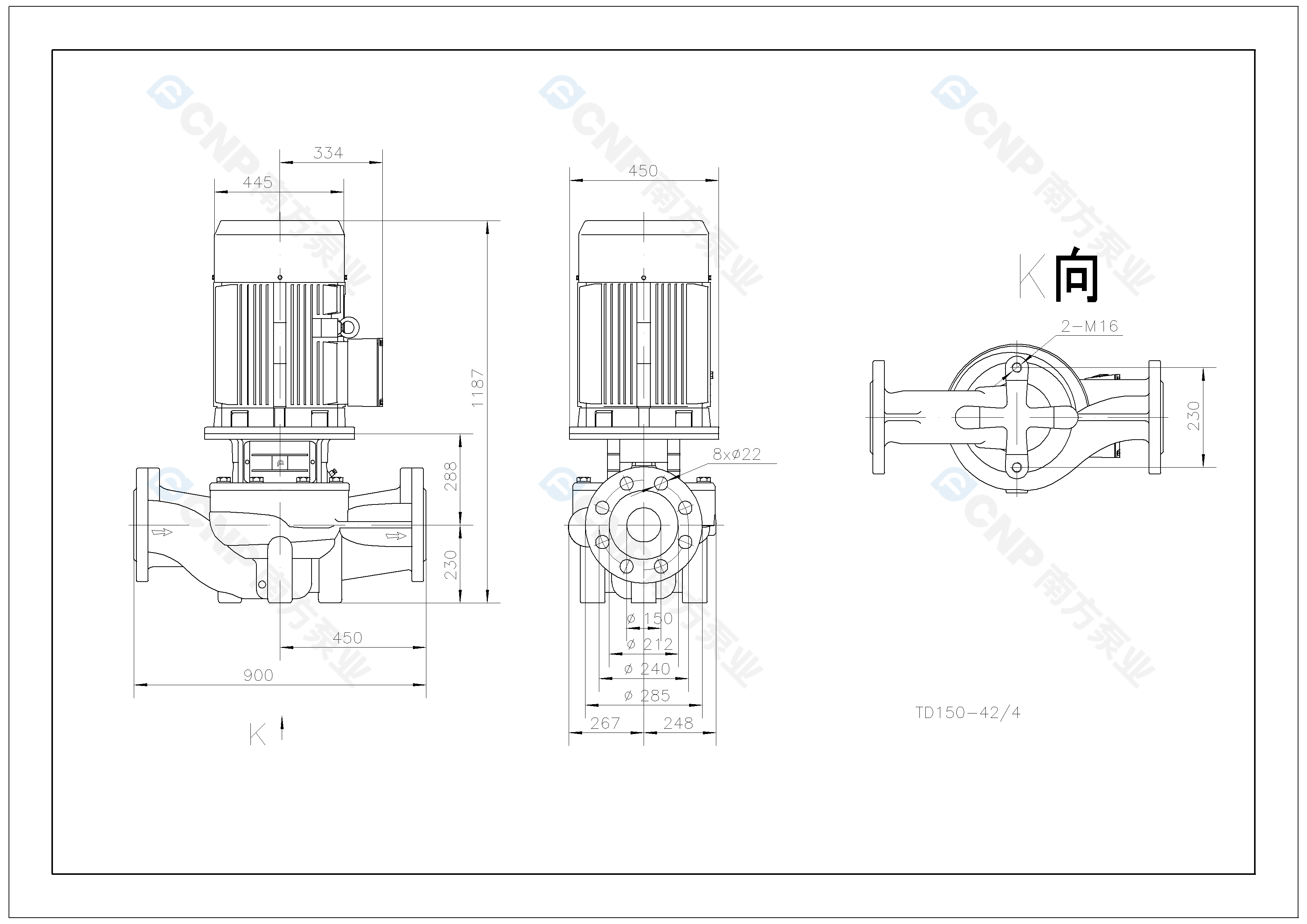 您的位置: 南方泵業 > 在線選型 > 管道泵 > TD(50Hz) > TD150-42/4